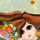 Big Eyed Girl Raining Flowers