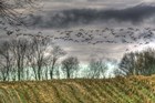 Autumn Grey Sky And Geese
