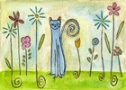 Blue Cat In The Flower Garden