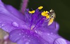 Bee On Purple And Yellow Flower