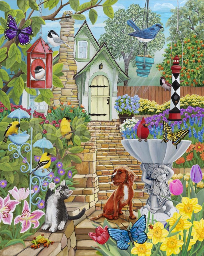 Vintage Bird Feeder Garden by Kathy Kehoe Bambeck art print