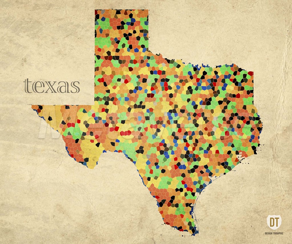 Texas County Map by David Bowman art print