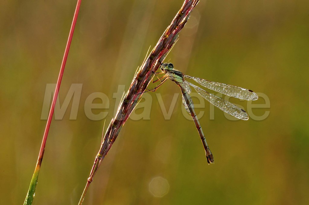 Title: Green Dragonfly On Red Stem