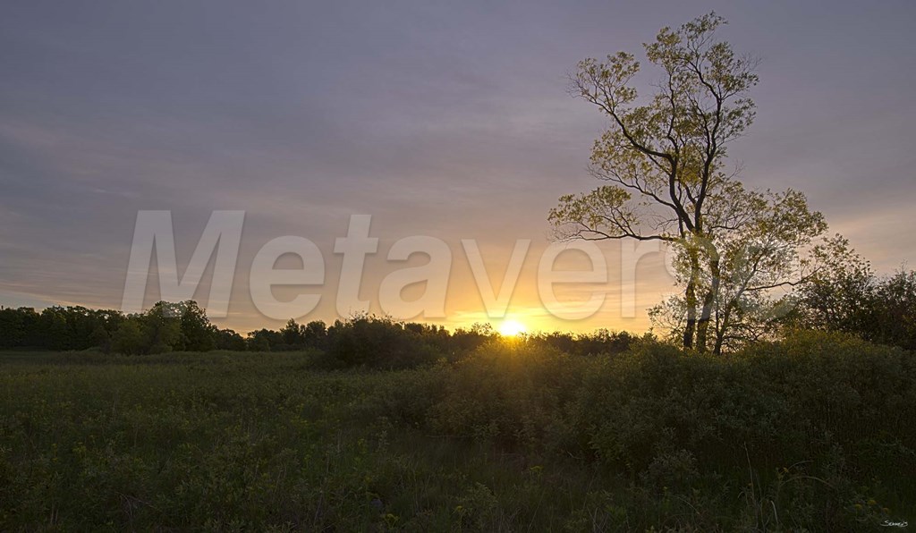 Title: Green Field And Tree At Sunset