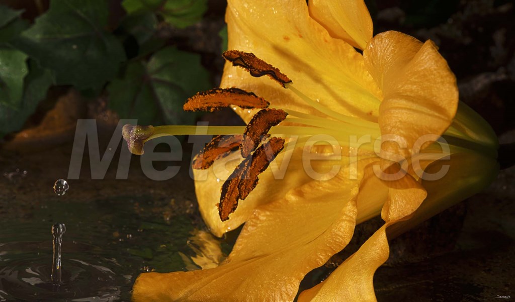 Gordon Semmens Yellow And Red Flower And Rippled Water Drop