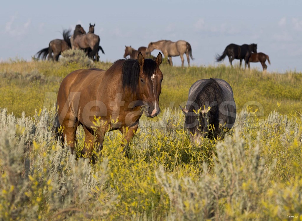 Title: Horses Grazing In Yellow Field II