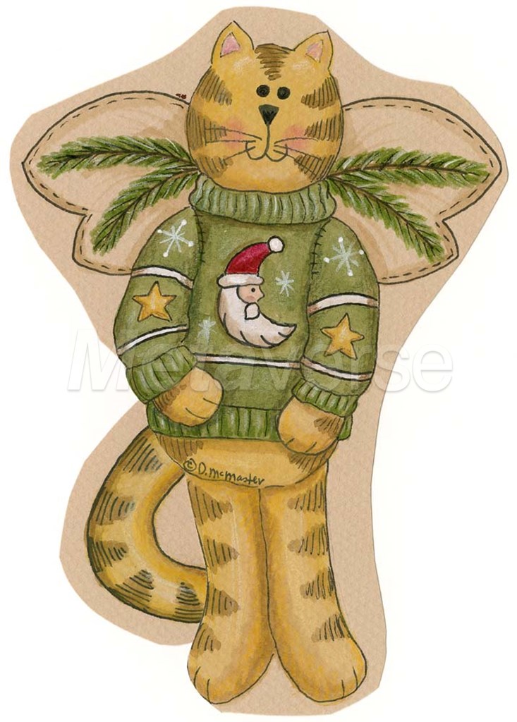 Green Sweater Cat by Debbie McMaster art print