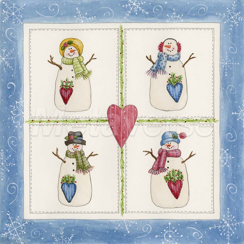 Four Snowmen With Heart Pockets by Debbie McMaster art print