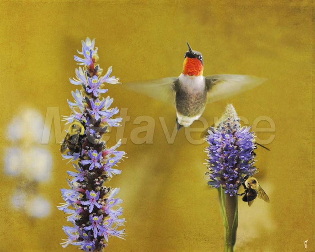 Title: Breakfast With The Bees Hummingbird