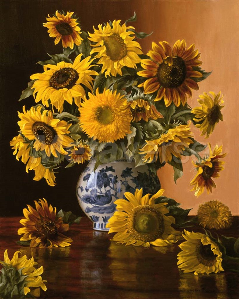 Sunflowers in a Blue Willow Vase by Christopher Pierce art print