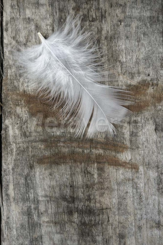 Title: White Feather on Wood