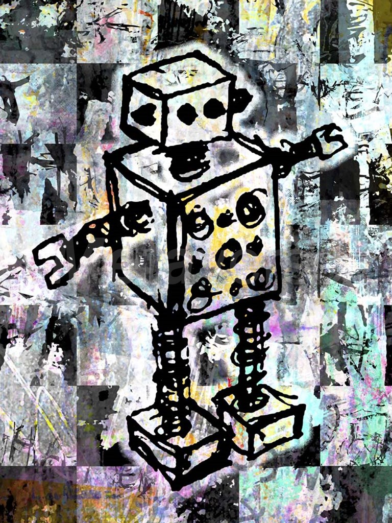 Sketched Robot Color by Roseanne Jones art print