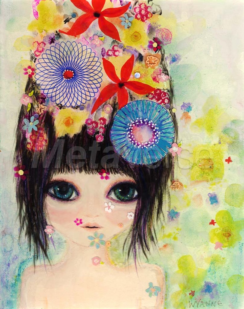 Wyanne Big Eyed Girl Raining Flowers
