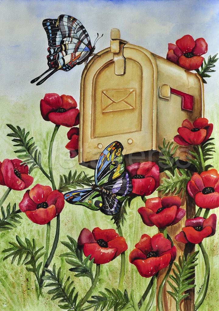Charlsie Kelly Blue Wing, Swallowtail & Poppies