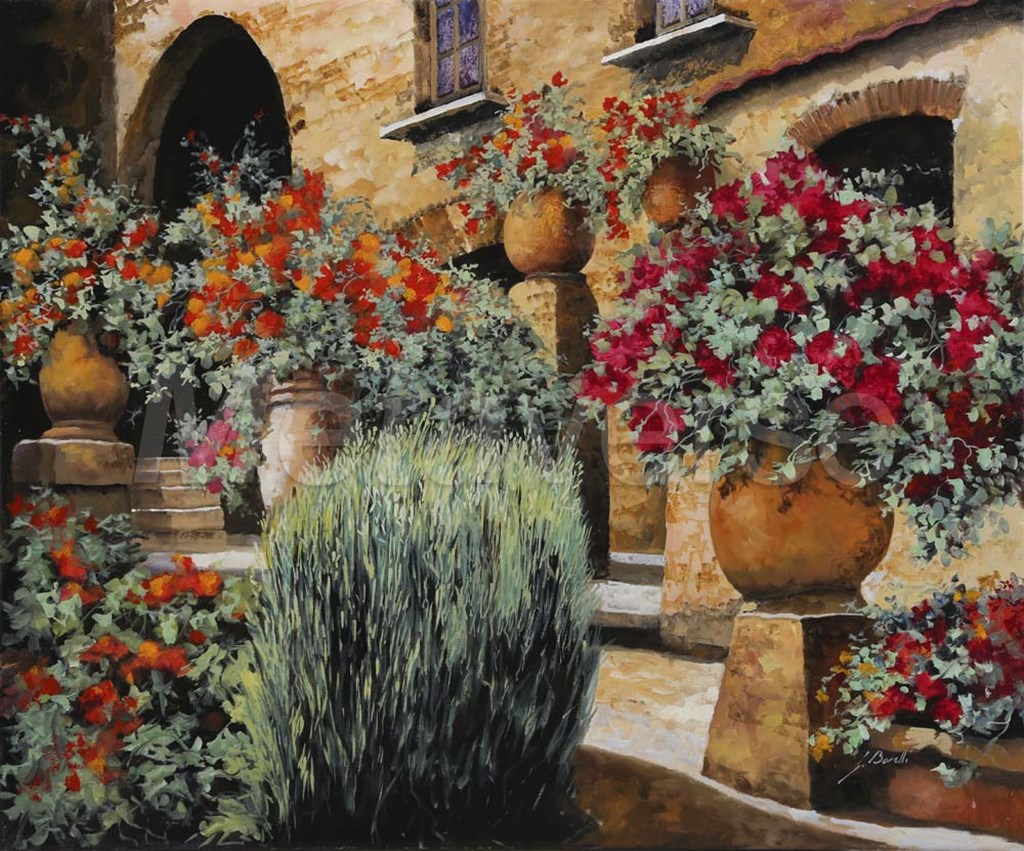 I Gerani Sulla Scala by Guido Borelli art print