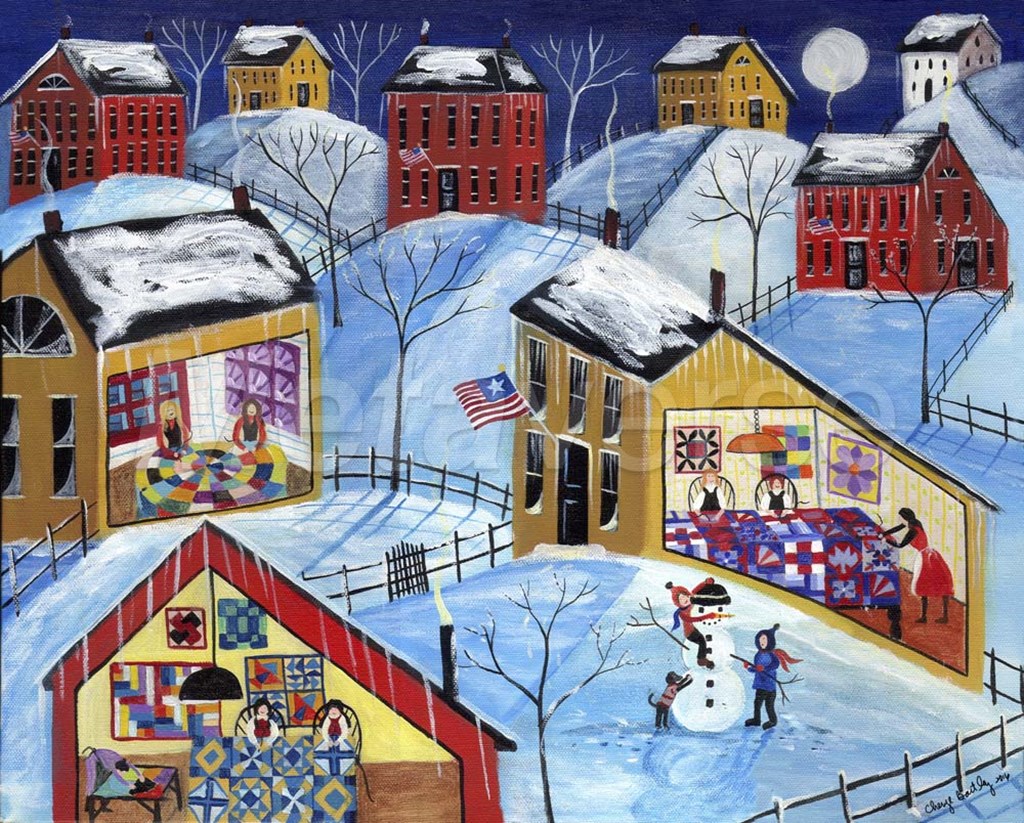Winter Moon Quilter Village by Cheryl Bartley art print