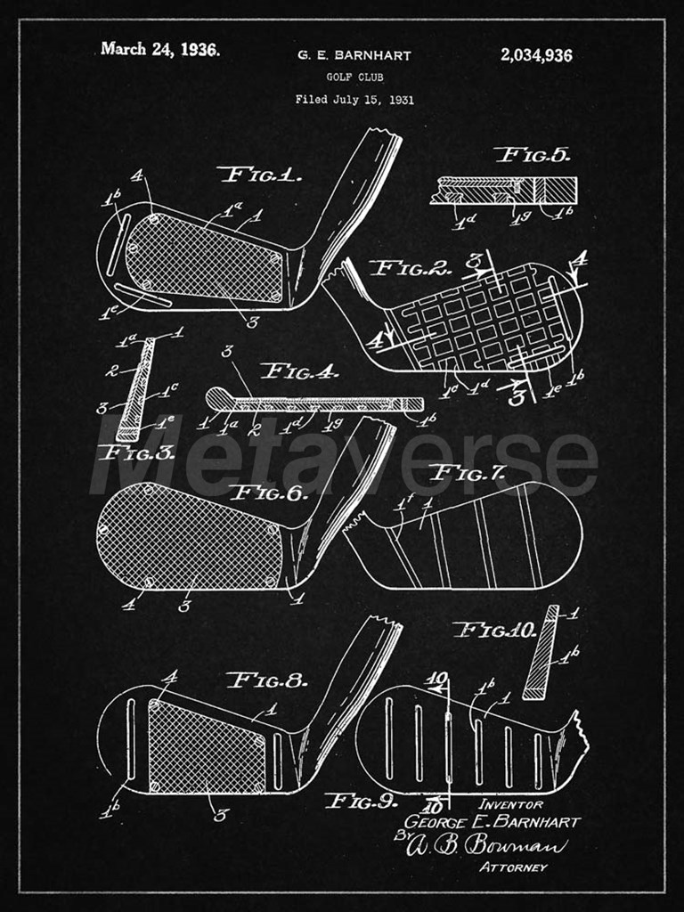 Title: Golf Club Patent - Vintage Black