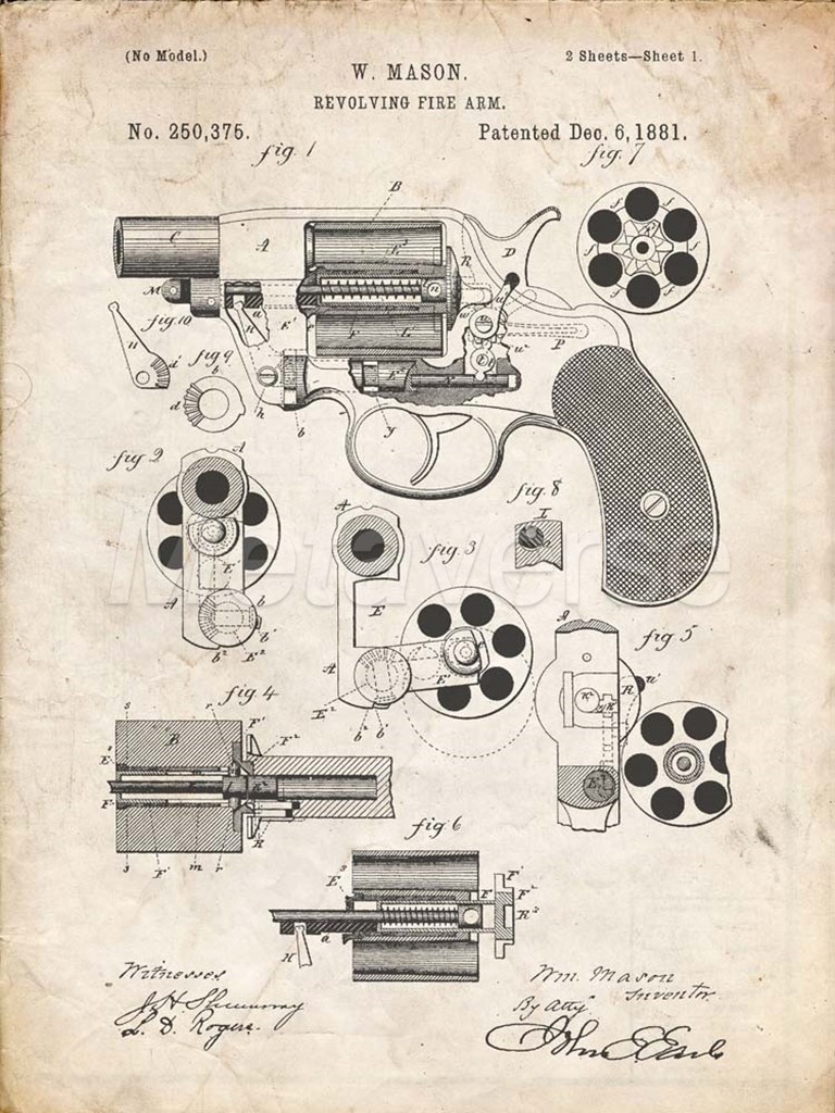 Title: Revolving Fire Arm Patent - Vintage Parchment
