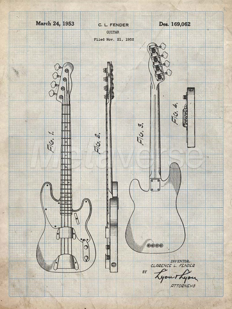 Title: Guitar Patent - Antique Grid Parchment