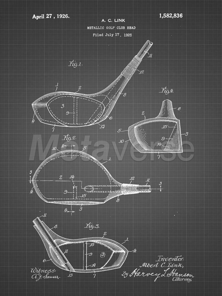 Title: Metallic Golf Club Head Patent - Black Grid