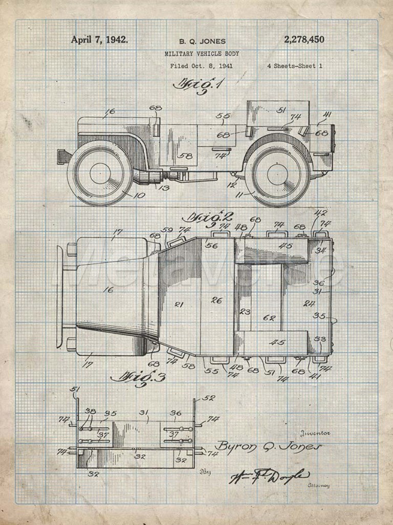 Cole Borders Military Vehicle Body Patent - Antique Grid Parchment