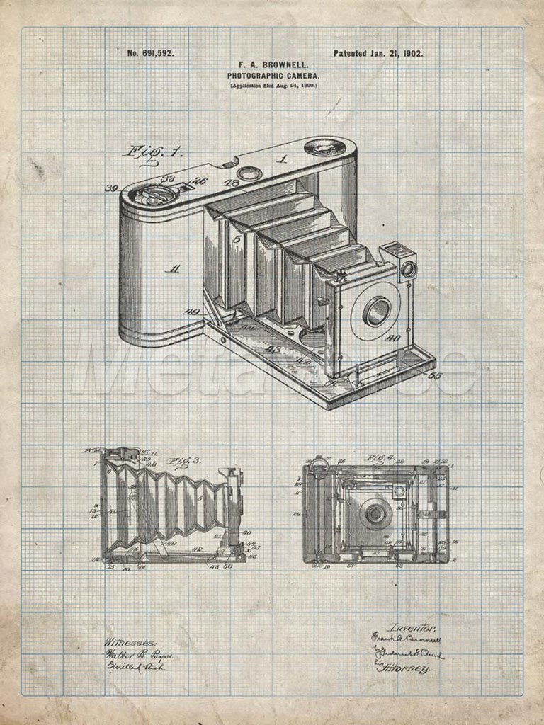 Title: Photographic Camera Patent - Antique Grid Parchment