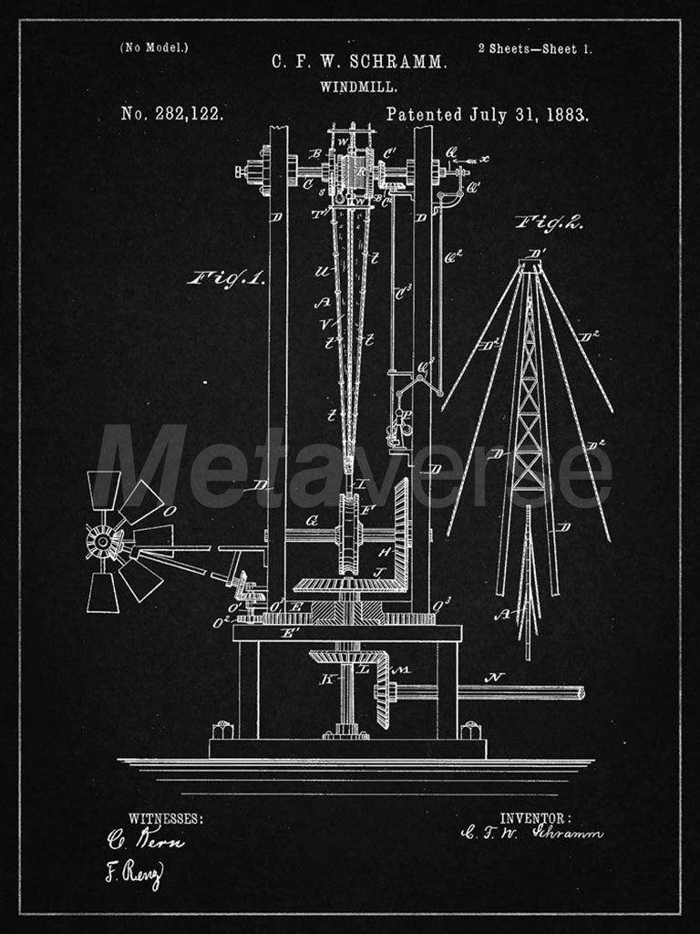 Title: Windmill Patent - Vintage Black