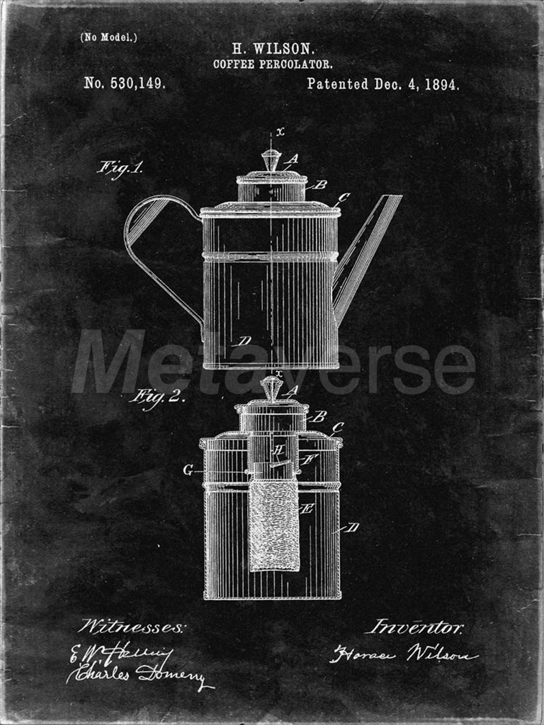 Title: Coffee Percolator Patent - Black Grunge