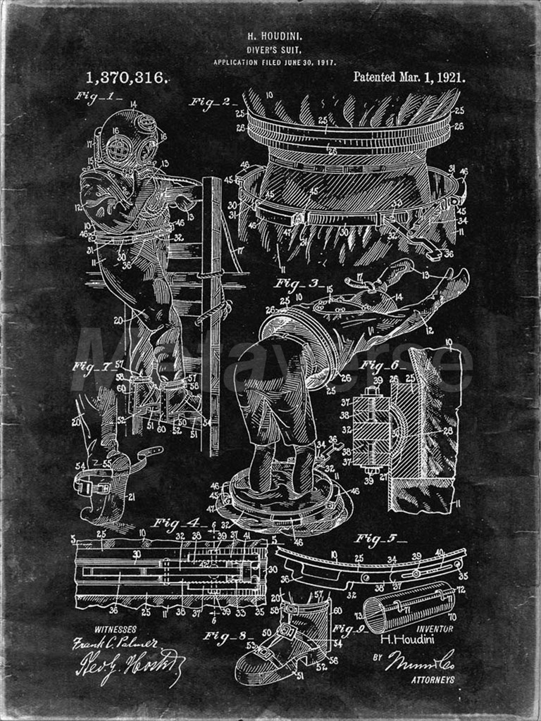 Diver's Suit Patent - Black Grunge by Cole Borders art print