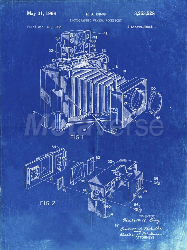 Title: Photographic Camera Accessory Patent - Faded Blueprint