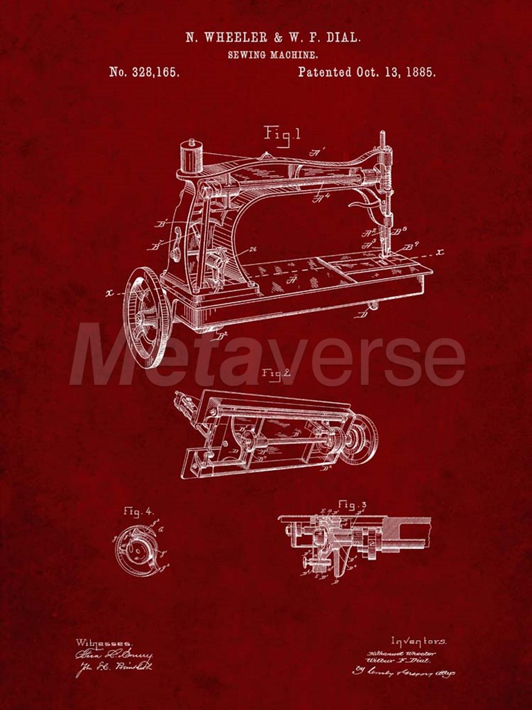 Title: Sewing Machine Patent - Burgundy