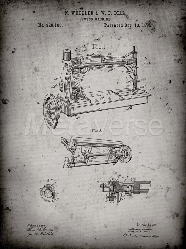 Title: Sewing Machine Patent - Faded Grey