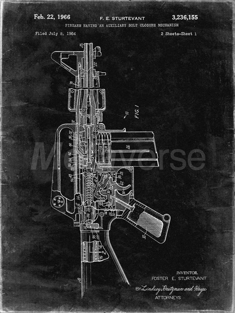 Title: Firearm With Auxiliary Bolt Closure Mechanism Patent - Black Grunge