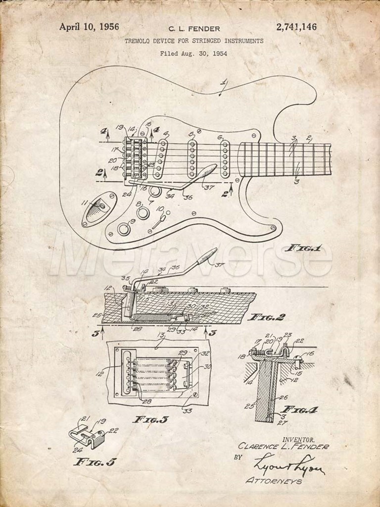 Cole Borders Tremolo Device for Stringed Instruments Patent - Vintage Parchment