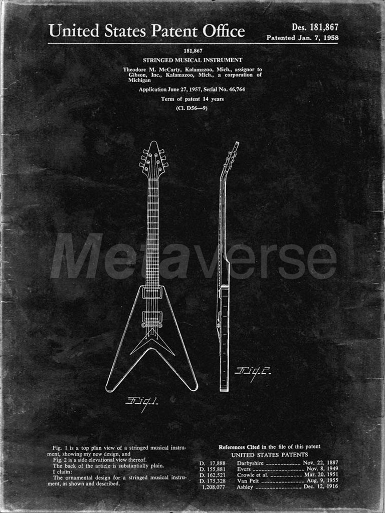 Cole Borders Stringed Musical Instrument Patent - Black Grunge