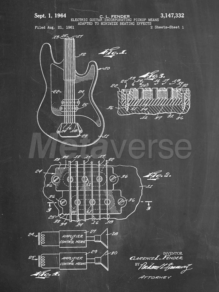 Title: Electric Guitar Patent - Chalkboard