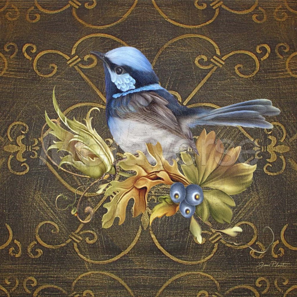 Glorious Bird On Damask II by Jean Plout art print