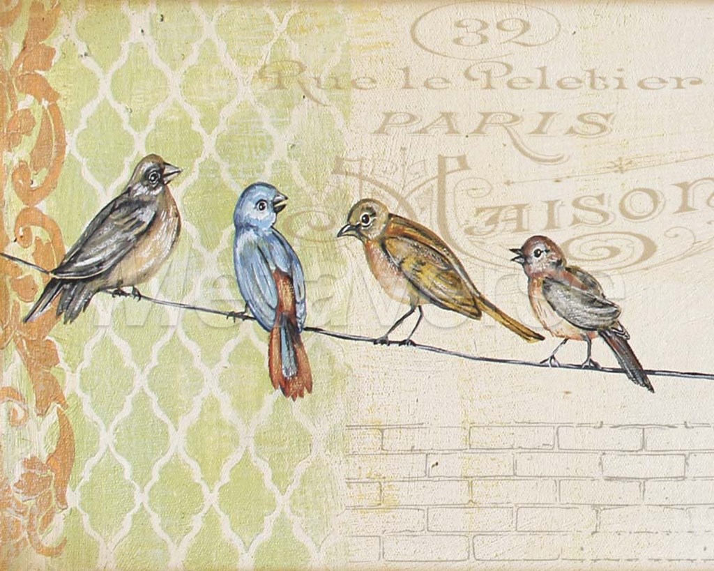 Title: Birds Gathered On Wire - Paris Wall - A