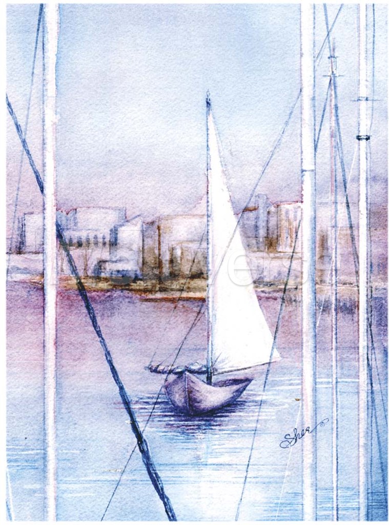 Sailing Into Harbor by Sher Sester art print