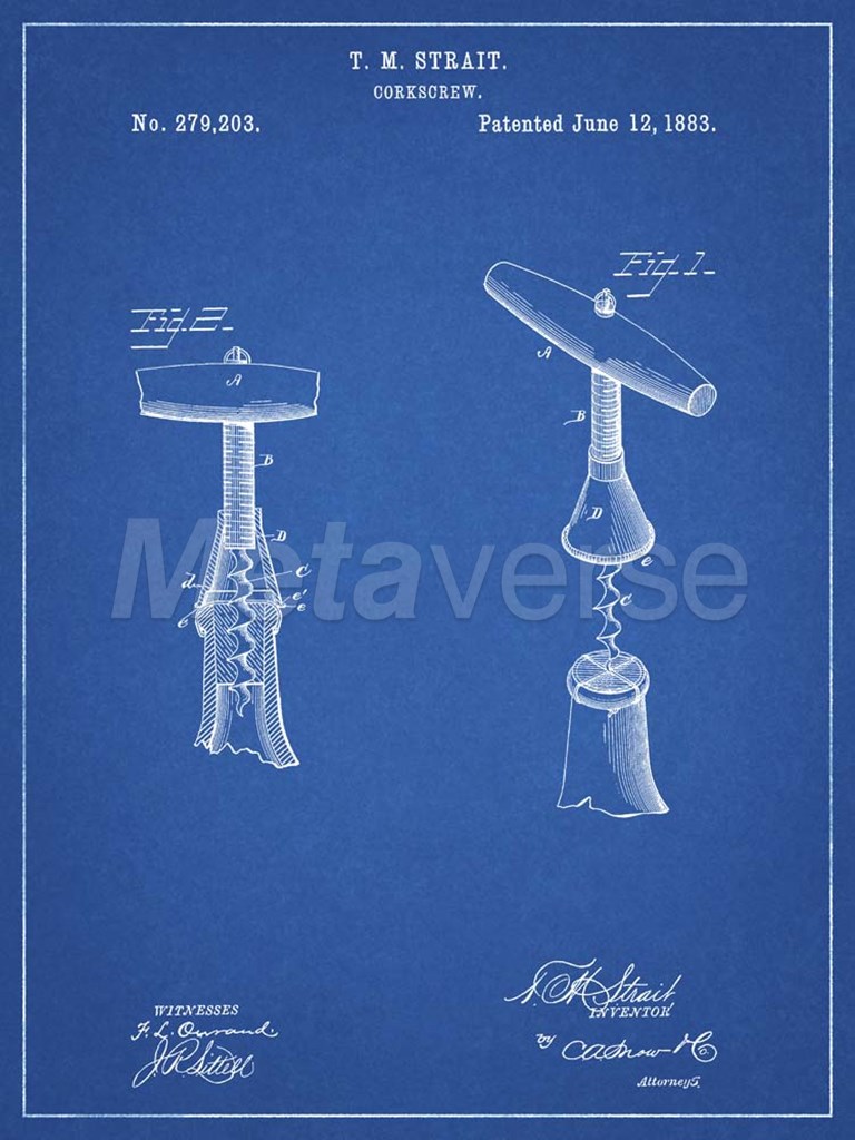 Title: Blueprint Corkscrew 1883 Patent